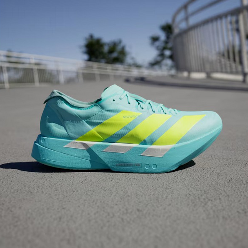 Proven to be the world's most winning shoe, the Adizero Adios Pro line is the pinnacle of Adizero Racing shoes. The Adios Pro 4 is geared for fast runners looking for a speedier experience, with additional features that optimize running efficiency. The carbon-infused ENERGYRODS 2.0 ensure a smooth transition from heel to toe, resulting in a quick, efficient stride. The midsole features a redesigned rocker point that improves running economy. A second layer of the best-in-class ultralight LIGHTSTRIKE PRO provides cushioning for each rapid stride, allowing you to maintain energy over time. The shoe's outsole has Continental™ rubber for a secure toe-off and LIGHTTRAXION to minimize weight while maintaining traction.