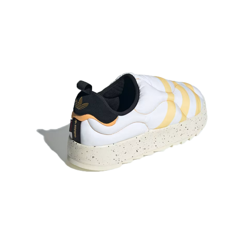 The adidas Puffylette shoes, which ride in the slipstream of the Adilette slide, wrap your feet in cozy warmth on chilly days. These slides are ideal for lounging on the sofa or going for a leisurely stroll because they insulate your feet without overheating them. A durable yet flexible EVA sole provides easygoing support and traction, while the upper is made of soft nylon for a comfortable fit wherever you go.