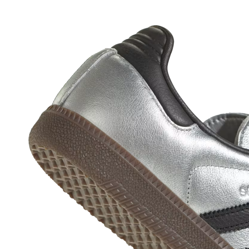 The adidas Samba was created in the 1950s as an indoor football trainer and has since become a style icon. The legacy continues in these Samba OG shoes, which have the same low-profile silhouette and T-toe design. Signature serrated 3-Stripes pay homage to the design's athletic origins, while the smooth leather upper has a high-shine metallic finish that catches the light with each stride.
