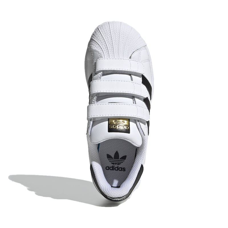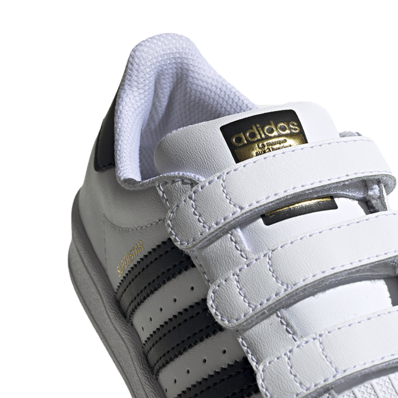 50 years in the books, and ready for 50 more. These adidas Superstar Shoes stay true to the iconic B-ball look that's been beloved for decades. Strap closures take the place of laces for easy-on-and-off that kids can do themselves.