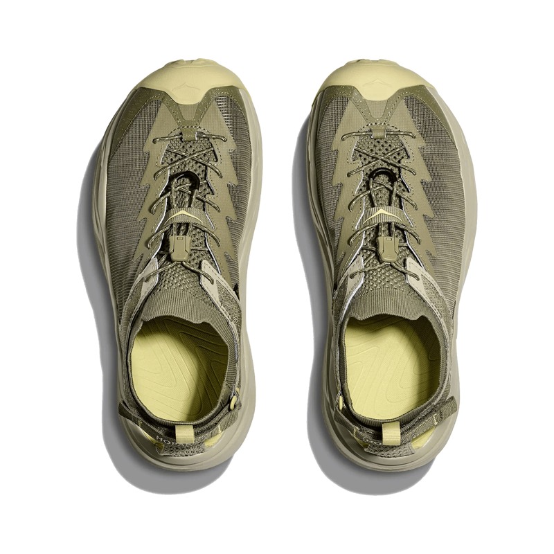 Reconceived with earth-conscious materials, Hoka implemented a 30% sugarcane topsole & midsole, 100% recycled knit upper, and 100% recycled Cordura mesh overlays to allow for water drainage while keeping trail debris at bay. Engineered with a toggle lace, adjustable heel strap, and quick-dry water repellency, there's no need to take your shoes off at the next creek crossing.