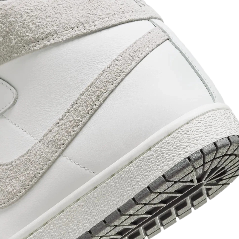 The Jordan Air Ship PE SP ‘Tech Grey’ presents a neutral colourway of the heritage ‘80s hoops shoe worn by Michael Jordan during his rookie NBA season. Smooth white leather upper, with shaggy grey suede on the signature Swoosh and collar. The latter has embroidered Nike Air branding on the back, and a woven Nike tag decorates the breathable nylon tongue. The high-top sits on a durable cupsole with stitched white sidewalls and a grippy grey rubber outsole.