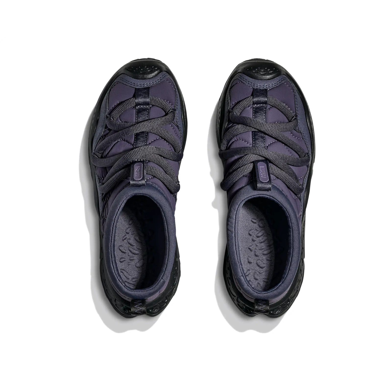 The futuristic-looking HOKA Ora Primo with its padded puff upper, soft knit collar, and elastic lacing system, delivers the season-neutral slip-on comfort that HOKA's Ora line is renowned for. With its symmetrical footbed, the Ora Primo provides good cushioning, providing the precise support you require.