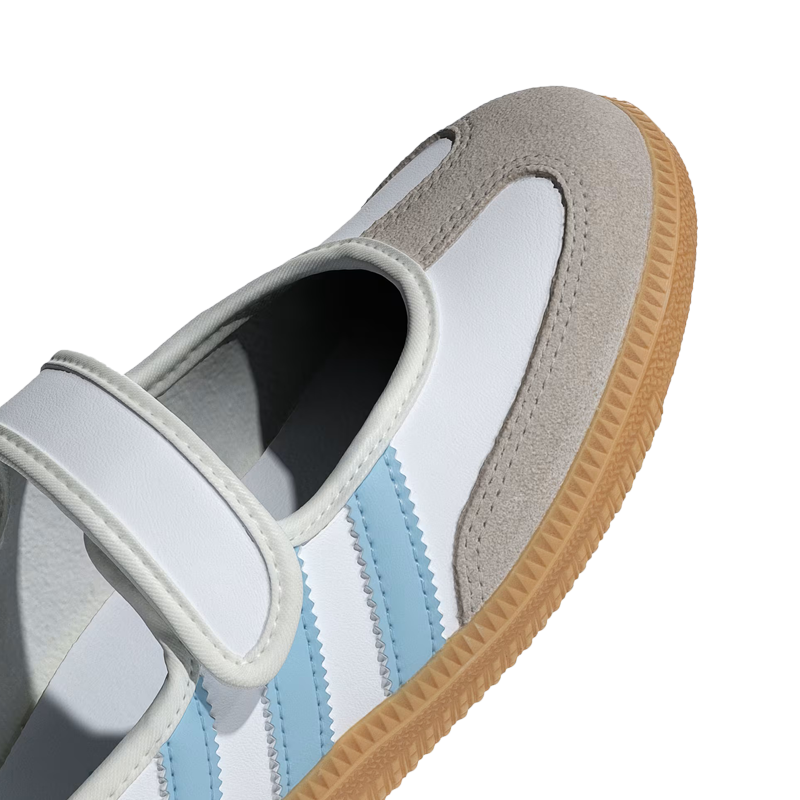 These juniors' adidas Samba Jane sneakers, inspired by the must-have Samba OG, are a fresh, seasonal spin on a classic. Their smooth leather upper comes in a variety of colorful colours, making it ideal for combining with your favourite ensemble. Hook-and-loop straps make them easy to slip on and off, whether you're heading out the door or kicking back at home.
