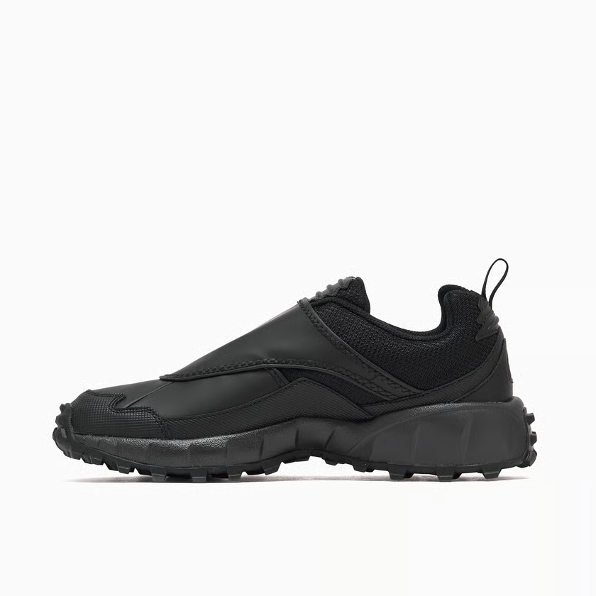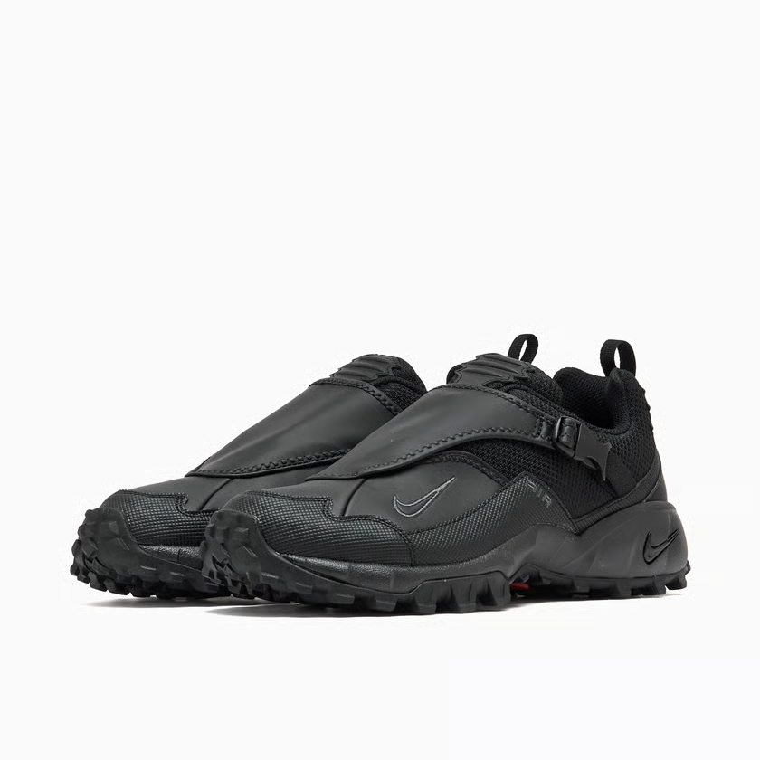This 2003 trail runner is back and prepared for your upcoming journey. A shroud inspired by tent flaps covers the laces for a clean look. The black colourway includes Anthracite accents and high-density overlays that wrap the toe and mudguard for added texture and durability. A mesh lining helps provide breathable comfort when temps climb. Whether you're in the city or on the trail, the durable outsole is prepared to go.