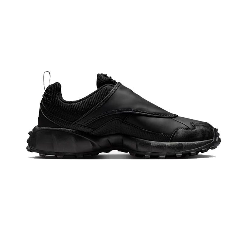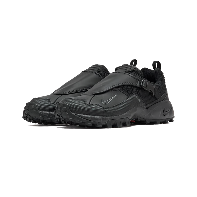 This 2003 trail runner is back and prepared for your upcoming journey. A shroud inspired by tent flaps covers the laces for a clean look. The black colourway includes Anthracite accents and high-density overlays that wrap the toe and mudguard for added texture and durability. A mesh lining helps provide breathable comfort when temps climb. Whether you're in the city or on the trail, the durable outsole is prepared to go.