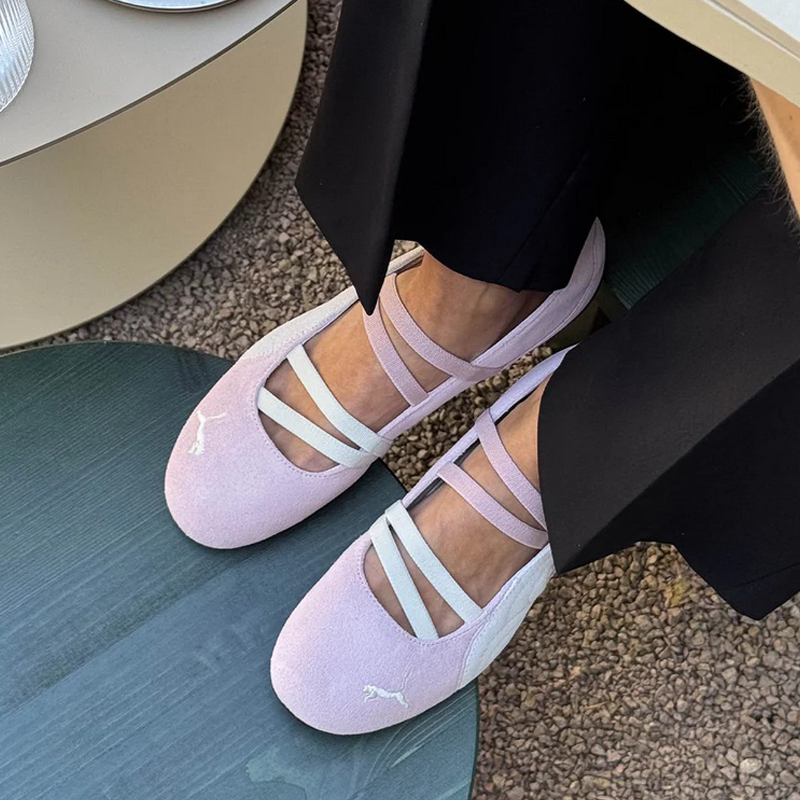 Rewrite the classics with Speedcat Ballet, a new iteration of the PUMA Speedcat. The Speedcat ballerina takes its inspiration from classic ballerina flats and transforms the racing culture icon with a sleek slip-on design. The Speedcat Ballet, with its innovative cutout Formstrip, elastic straps, and tire tread sole, delivers seamless track-to-street chic style.