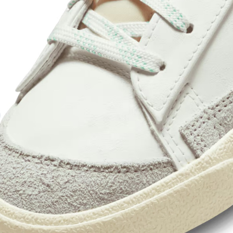 Nike introduced an entirely new range called "Certified Fresh," which features  simple, colorfully accented colourways like this Nike Blazer Low. Like most iterations of the Nike Blazer, the base of this Blazer is constructed out of white smooth leather. Suede accents, then, adorn the toe and the side of the forefoot, while “Sail” paints the midsole below.