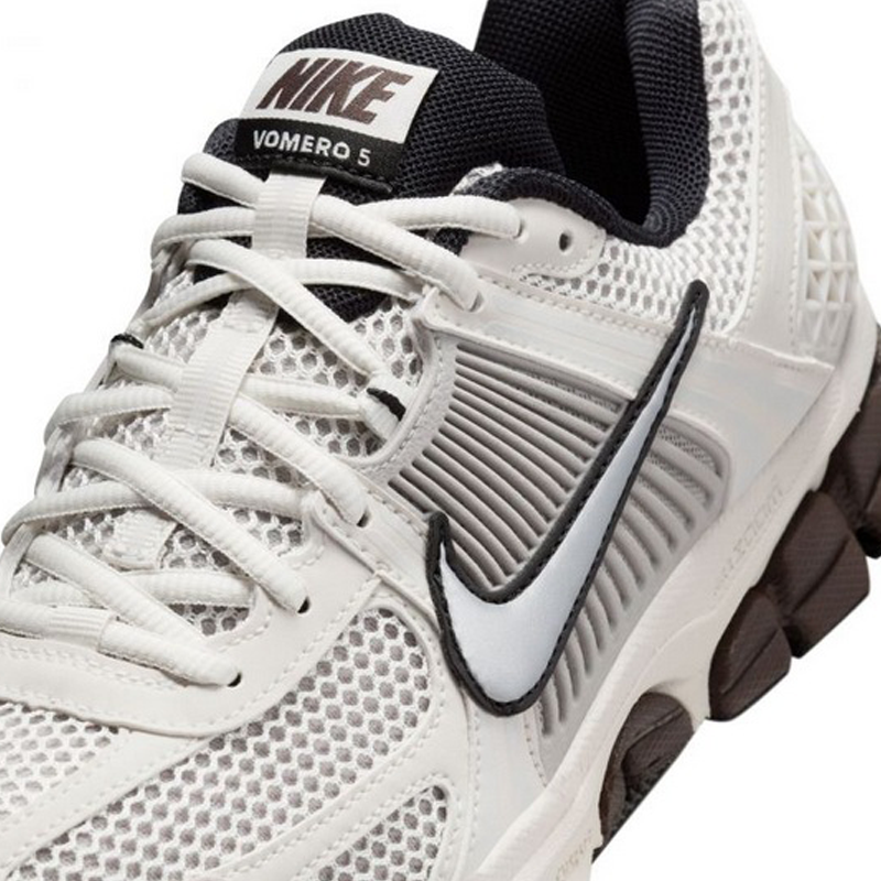 This Zoom Vomero 5, adorned in Phantom, Metallic Platinum, Light Iron Ore, Baroque Brown and Black hues, offers a clean and sophisticated appearance suitable for various occasions. The design is completed with 3M reflective detailing on a Phantom midsole equipped with Cushlon and Zoom Air, along with a Brown and Black rubber outsole.