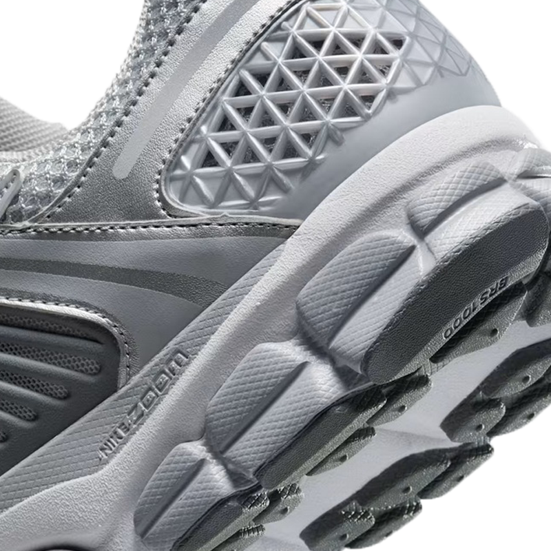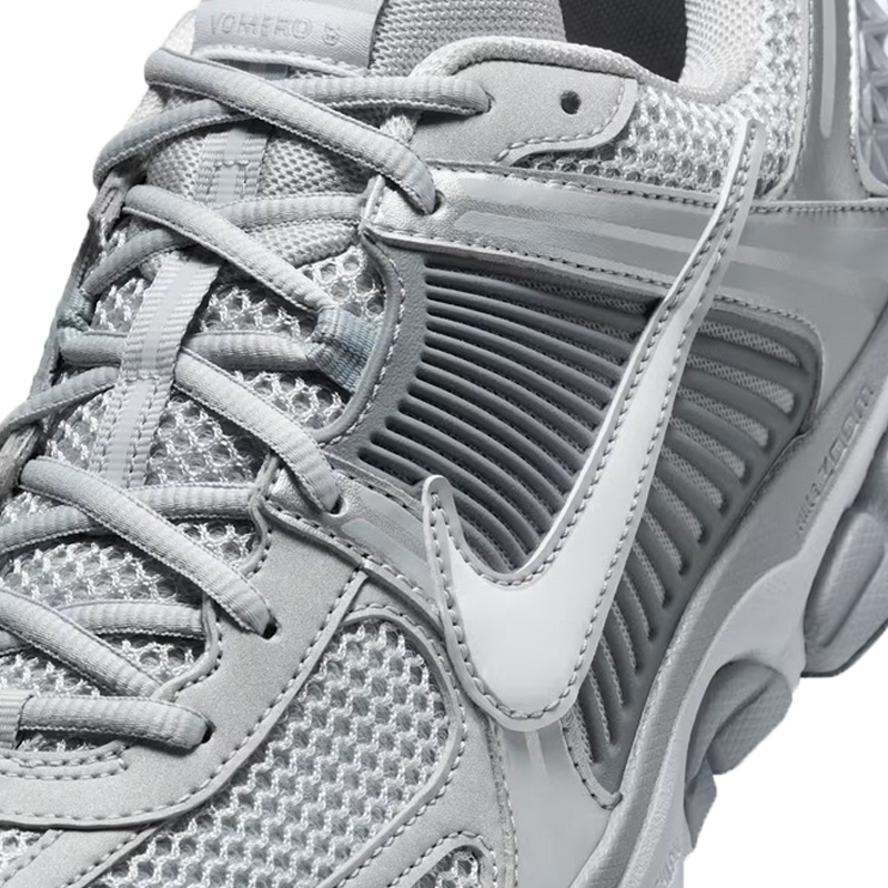 The Vomero 5 brings its high-fashion edge to the streets once more, this time in the grey shade you adore. A richly layered design combines airy textiles, synthetic leather, and plastic accents to create a complex upper that is easy to style. Mesh reinforced with TecTuff® adds durability and airy utilitarianism to the complex, layered design. Reflective design details add a little flash to your step, making it the perfect finish for any fit.
