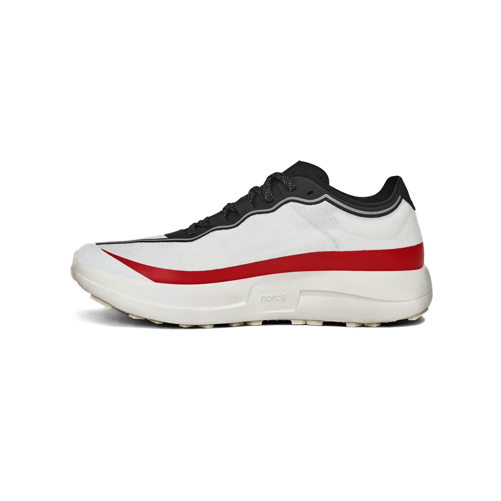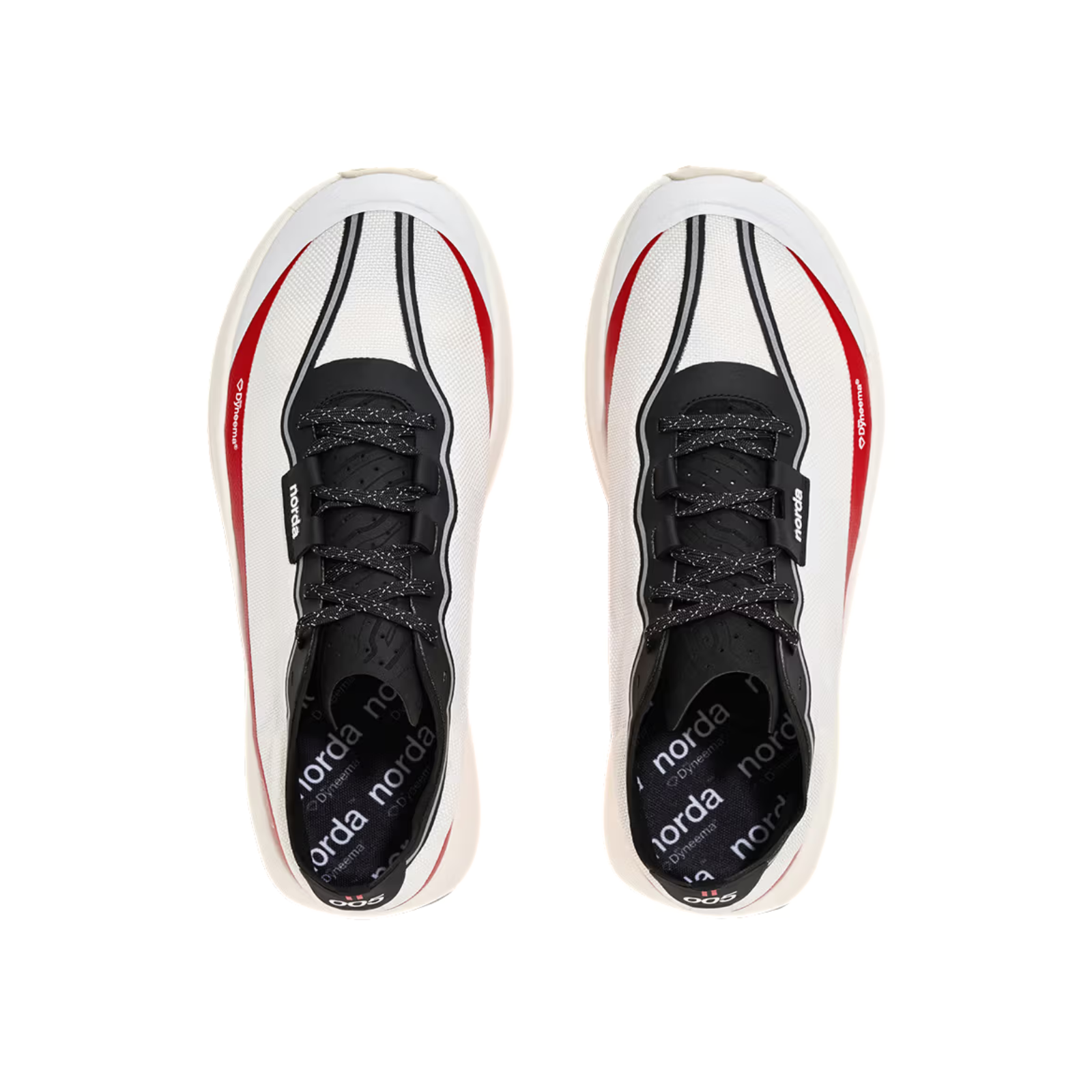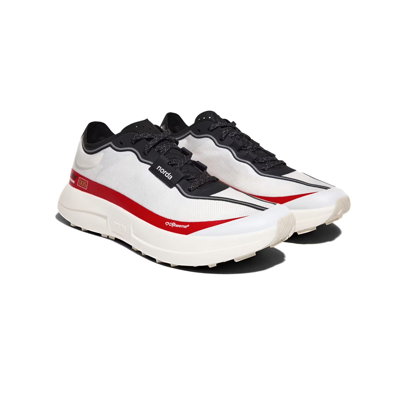 THE NORDA FIT LOCK SYSTEM: The 005 has a proprietary fit lock system detailed for race day. The heel collar is designed with pods for increased foot lockdown, comfort, and reduced debris entry. The tongue is a smooth, perforated microsuede that molds to the foot and allows for heat to escape during high-intensity running. This fit lock system is finished off with a new interior foot binding technology, which is engaged via the laces and ensures unwavering stability.